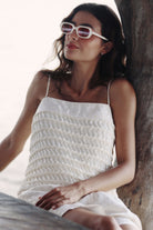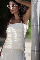 The Sandra Top stands out with its hand-stitched gathered texture on the front, adding an artisanal and unique touch. Crafted from a delicate rayon-viscose blend with subtle satin polka dots, this top exudes both elegance and freshness. The adjustable shoulder ties allow for a customizable fit, while the square neckline and relaxed silhouette ensure comfort and versatility.