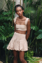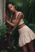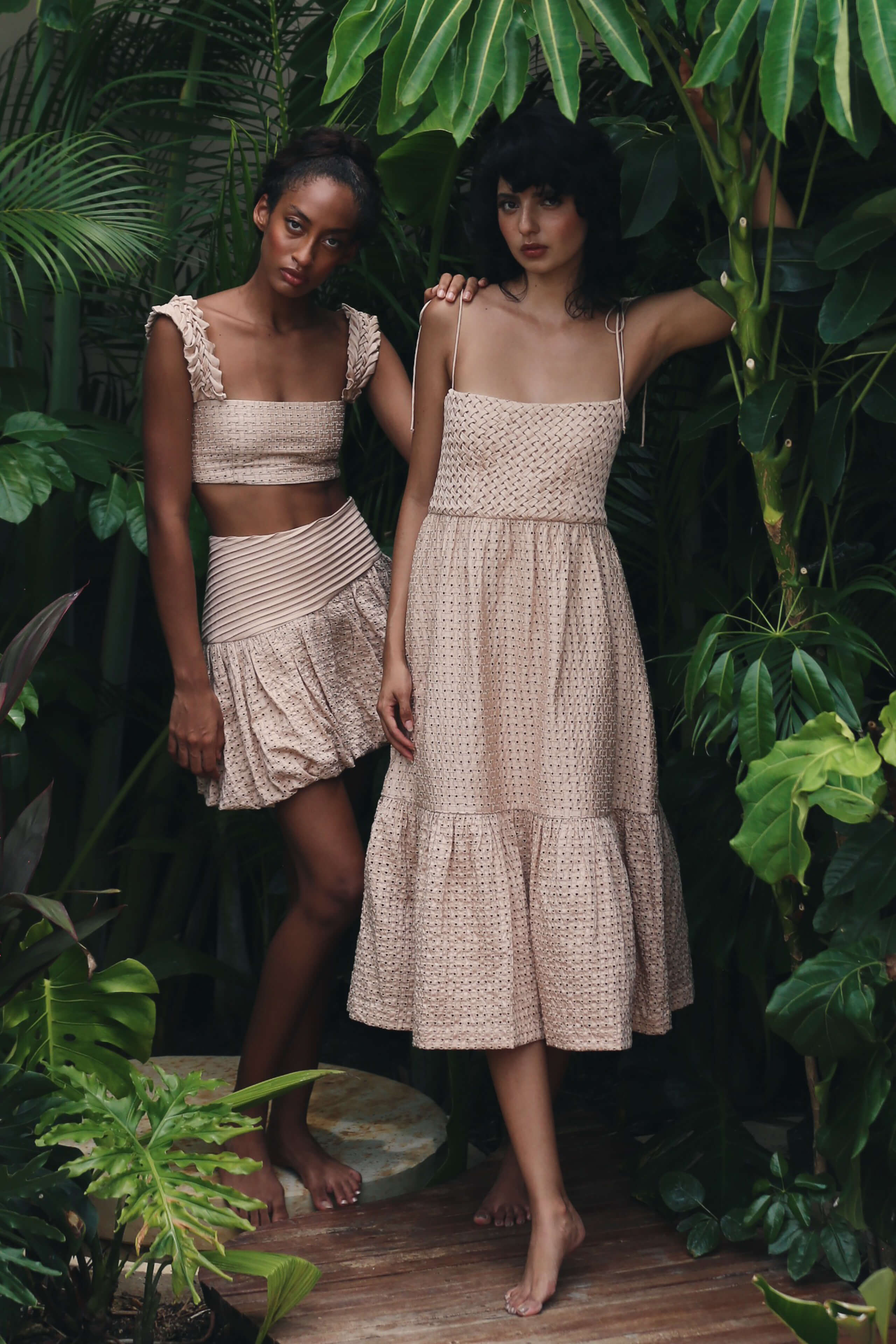 The Romina Skirt stands out for its asymmetric balloon design in embroidered cotton eyelet fabric. The drop-waist cut and textured pleated details add a modern and elegant touch. With its voluminous silhouette and flattering fit, it's perfect for both casual and sophisticated occasions.