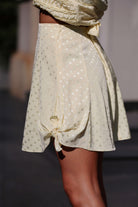 Light, feminine, and summer-ready, the Gianna Skirt is crafted from a delicate rayon-viscose fabric with subtle satin polka dots that catch the light beautifully. Its high-rise, A-line silhouette flatters the figure, while adjustable side ties add a playful and personalized detail.